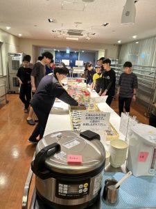 中1の男の子達は7時頃から、ソワソワし始めて、何を食べようか吟味し始め、