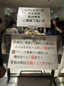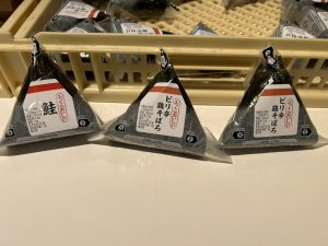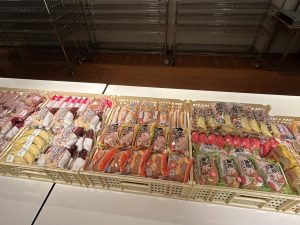 ラインナップは、惣菜パン、甘いパン、おにぎり、サラダ、ヨーグルト、カップスープ、納豆、チーズ、