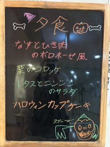 メニューボードにはハロウィンのかぼちゃを描いてくれています。